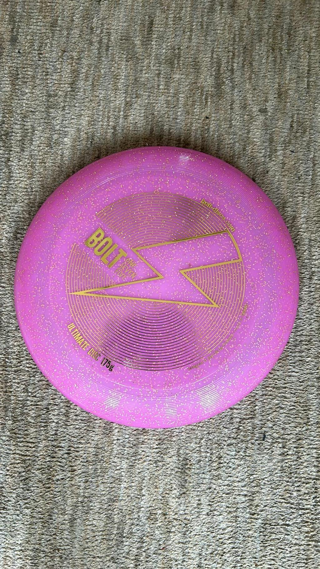 A Classic 175g Flying Disc From Bolt Discs, available in 9 super bright solid and shimmer colours.