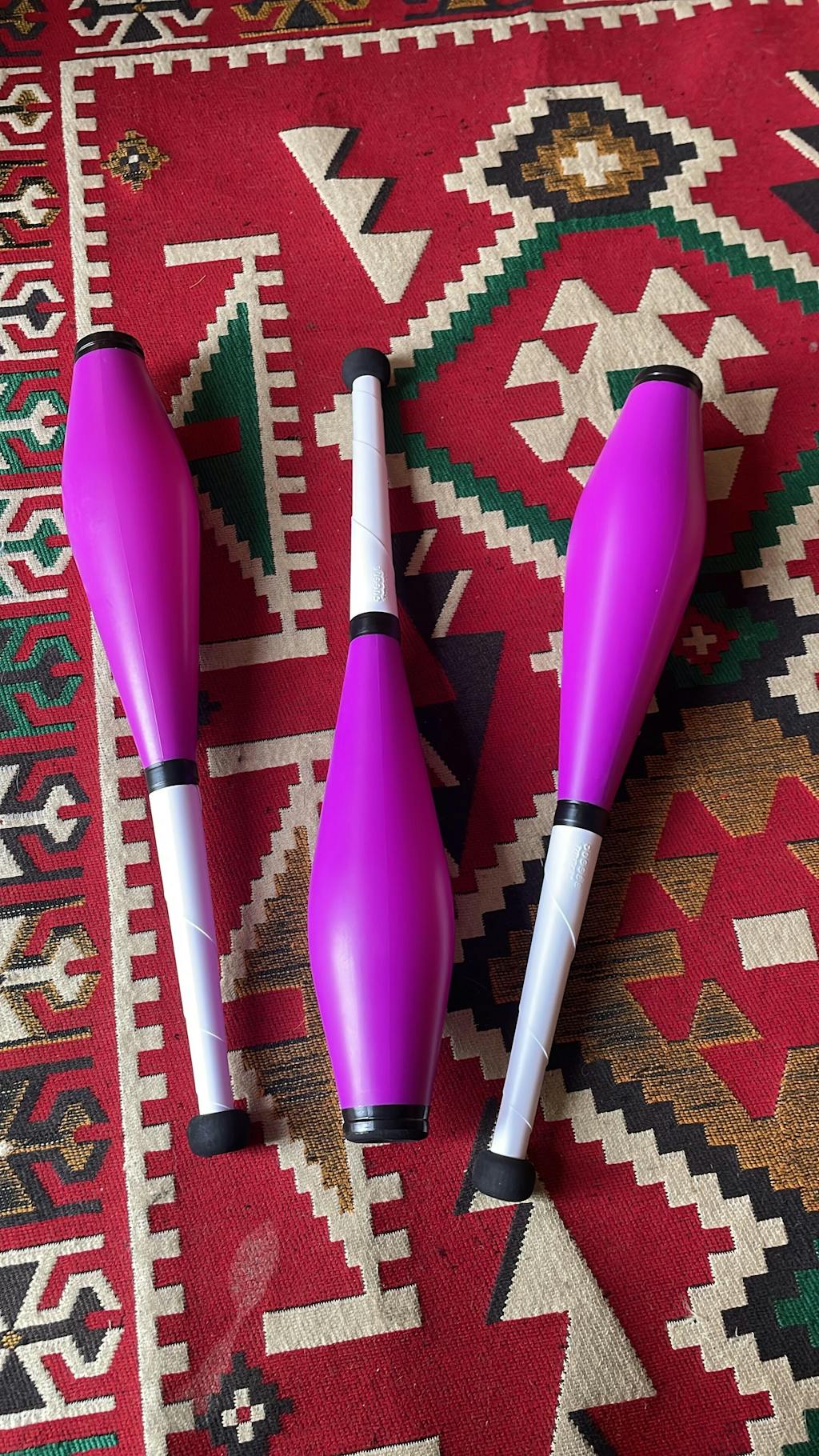 These are really durable. I’ve just started juggling these so am doing one at a time but after dropping each of them on concrete, they’re holding together really well. The colours are bright, the handles are comfortable. I am really enjoying them