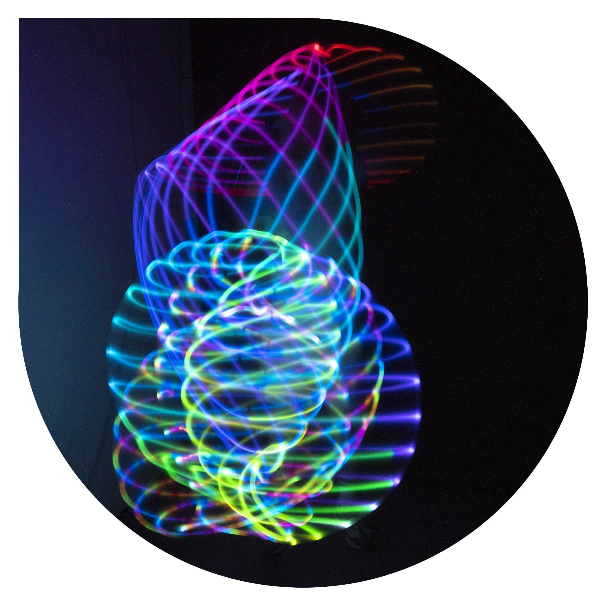 The hoop features 40 psychedelic patterns designed to create mesmerizing effects. You can easily customize the colour and speed of each pattern using the remote and save them to the favourites bank.