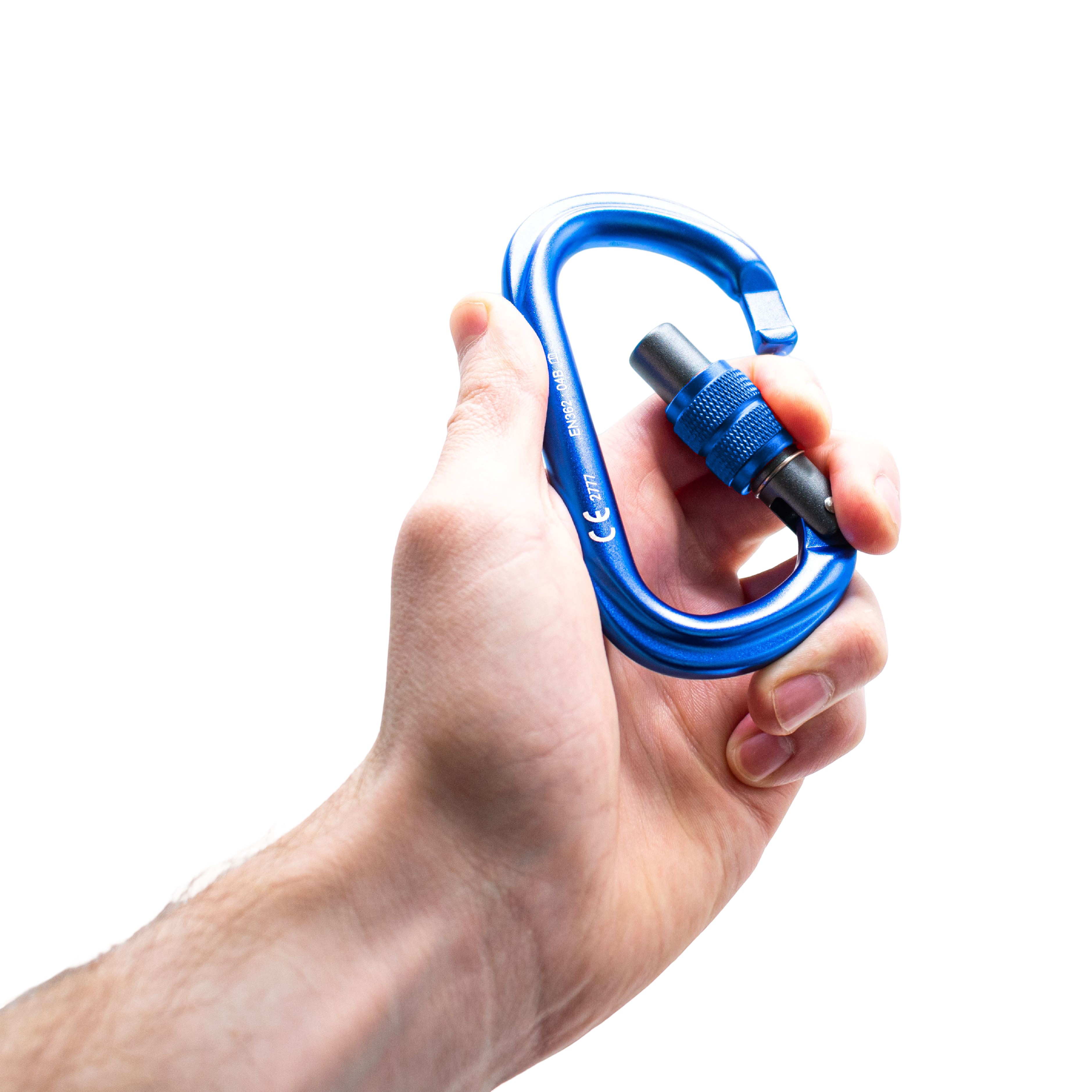 A lightweight aluminium carabiner, with a screw-locking gate.